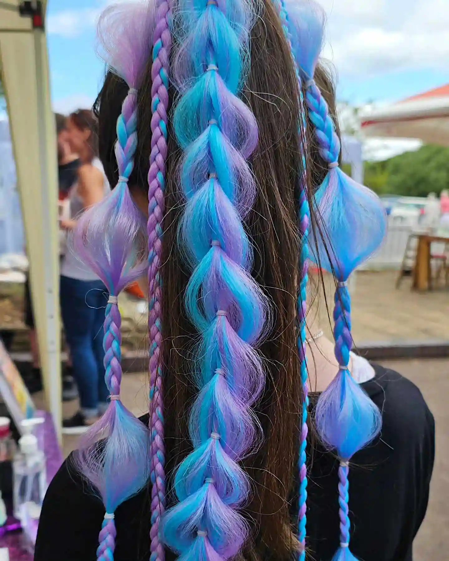 Whether it’s birthday parties, weddings, festivals, or corporate events, our service caters to all ages. Choose from unique party packages featuring custom braids, clip-in hair tinsel, and press-on nails, perfect for indoor or outdoor celebrations.